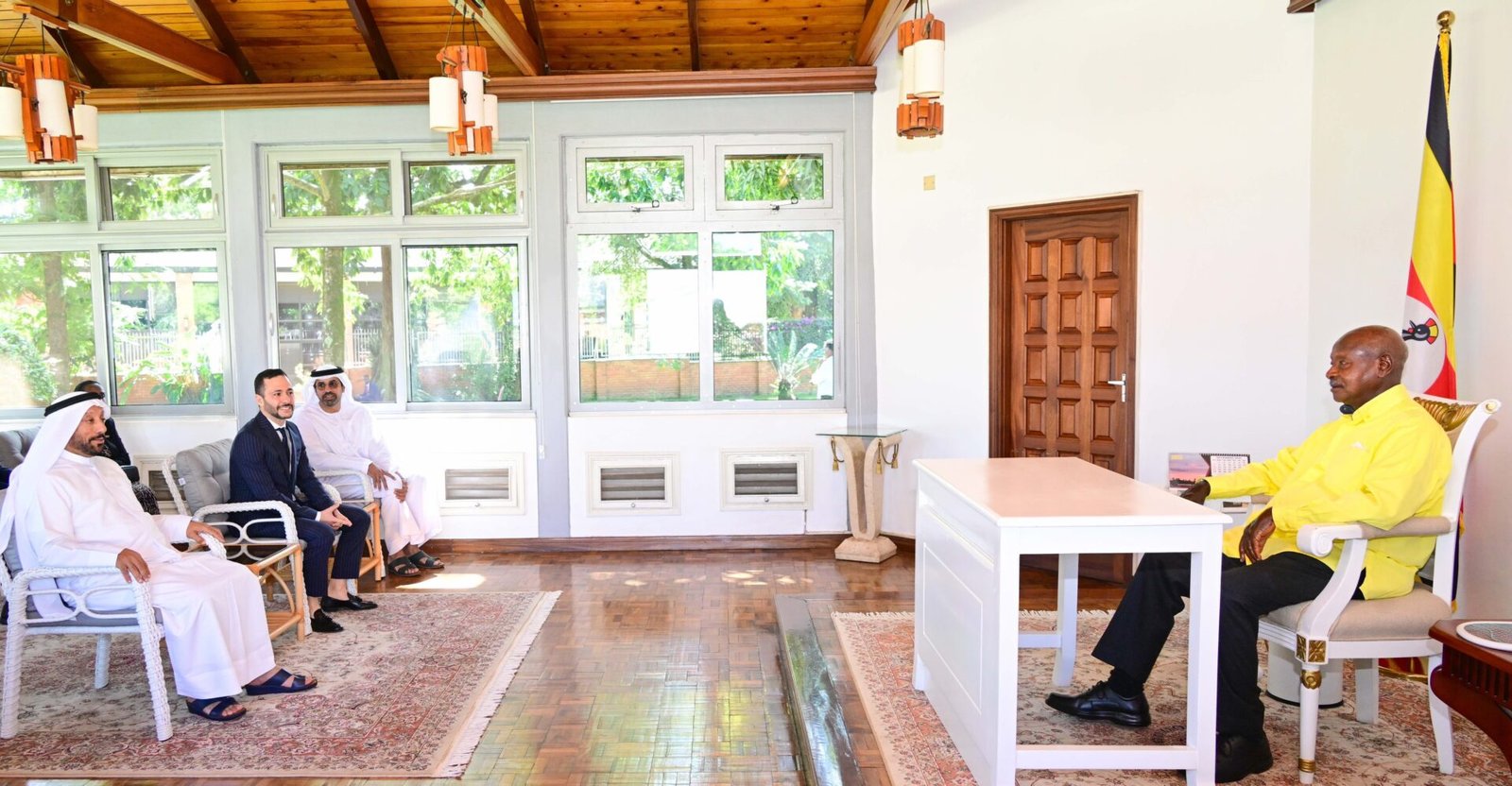 President Museveni confirmed that he met with a delegation from the Sharjah Chambers of Commerce and Industry at Nakasero State Lodge on Saturday morning. The delegation was led by Farid Belbouab, the Chief Executive Officer of Gulftainer, a major global port operator.