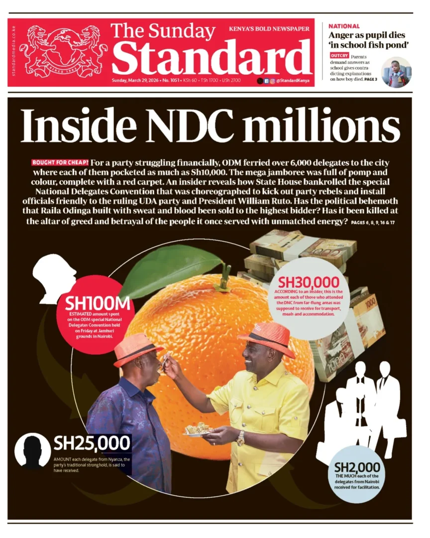 “Our attention has been drawn to a misleading and sensational headline published by The Standard Group alleging that ODM ferried 6,000 delegates to Nairobi for our National Delegates Conference on Friday, March 27 2026, at a cost of KSH 100 million, and that delegates received varied payments across different regions,” Junet stated.